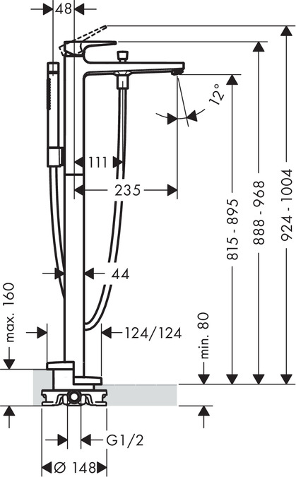 De Metropol ééngreeps bandmengkraan vrijstaand met rechte greep met mat wit finish combineert een exclusief design met buitengewone functionaliteit en expressieve kleur. Precieze oppervlakken en een geometrische vormtaal zijn typisch voor de hansgrohe lijn Metropol. De bijzondere uitstraling van de mengkraan wordt versterkt door de duurzame kwaliteitsfinish in mat wit. Deze maakt de 235 mm uitstekende en bijna 1 meter hoge vrijstaande ééngreeps mengkraan tot een fascinerend designstatement met een frisse uitstraling, dat erg goed tot zijn recht komt bij een vrijstaand bad. Het bad loopt snel vol: De doorstroomhoeveelheid van de handdouche/de baduitloop (bij 3 bar) bedraagt max. 14,5/20,5 l/min.