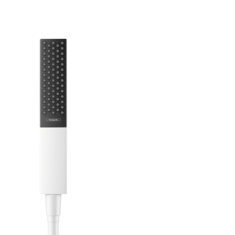 De Rainfinity staafhanddouche 100 1jet van hansgrohe overtuigt met zijn elegante verschijning in mat wit en antraciet. De trendkleur harmonieert heel goed met sfeervolle materialen zoals hout en textiel. Vorm en functie zijn hier in harmonie: Het grote straalbereik (lengte 100 mm) laat designliefhebbers genieten van een weldadige regendouche van de nieuwe straalsoort PowderRain.