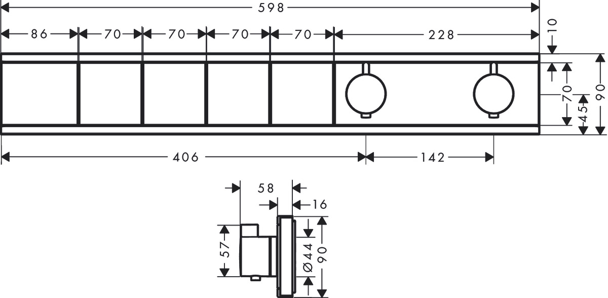 De hansgrohe RainSelect inbouwthermostaat voor 4 functies in mat zwart is een innovatieve douchebediening voor een weldadige waterervaring. Het design onderscheidt zich door een slank silhouet, een elegante vormtaal en hoogwaardig materiaal. Met zijn duurzame kwaliteitsfinish in mat zwart is de thermostaat een designstatement in een trendy kleur met ruimtelijk karakter. Met de ruime, duidelijk gemarkeerde bedieningstoetsen worden de vier functies - bijvoorbeeld een handdouche en een douchekop met drie straalsoorten - eenvoudig met één druk op de knop aangestuurd (Select). Dankzij de beide ergonomische draaigrepen kunt u de waterhoeveelheid en -temperatuur ook met gladde handen snel en handig instellen. Het voordeel van inbouwinstallatie: de technologie verdwijnt in de muur - maakt ruimte voor design, handige functies en meer ruimte in de douche. Voor de installatie heeft u het RainSelect inbouwdeel voor 4 functies (#15312180) nodig.