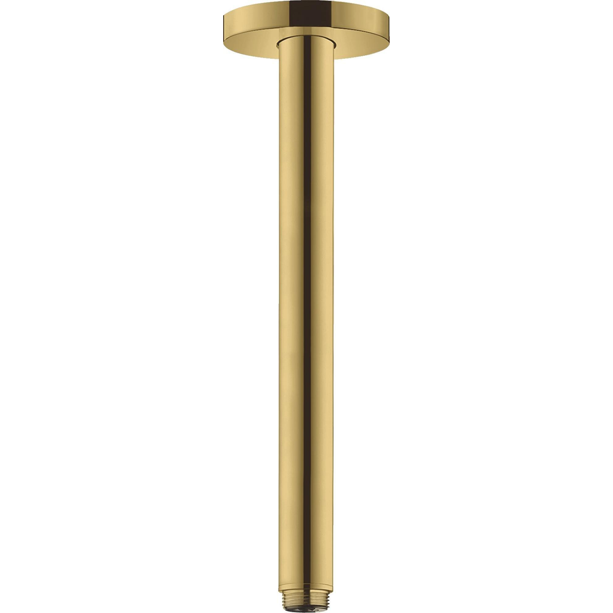 Met de hansgrohe plafondaansluiting S 30 cm in Polished Gold Optic wordt een hoofddouche betrouwbaar aan het plafond gemonteerd en met de wateruitvoer verbonden. Door zijn lengte is de plafondaansluiting bijzonder geschikt voor de installatie in badkamers met hoge plafonds. Hij is gemaakt van hoogwaardig messing en is bijzonder duurzaam. De ronde rozet past erg goed bij de hansgrohe lijn Rainfinity, maar ook bij andere hoofddouches met een rond of ovaal design. Door de glanzende kwaliteitsfinish in gepolijste goudkleurige afwerking heeft de plafondaansluiting een moderne uitstraling en is een perfecte aanvulling op hoofddouches met dezelfde finish. In combinatie met een douchekop eveneens in Polished Gold-Optic wordt de plafondaansluiting een edel ensemble, dat bijzonder goed in een modern badkamerdesign past.