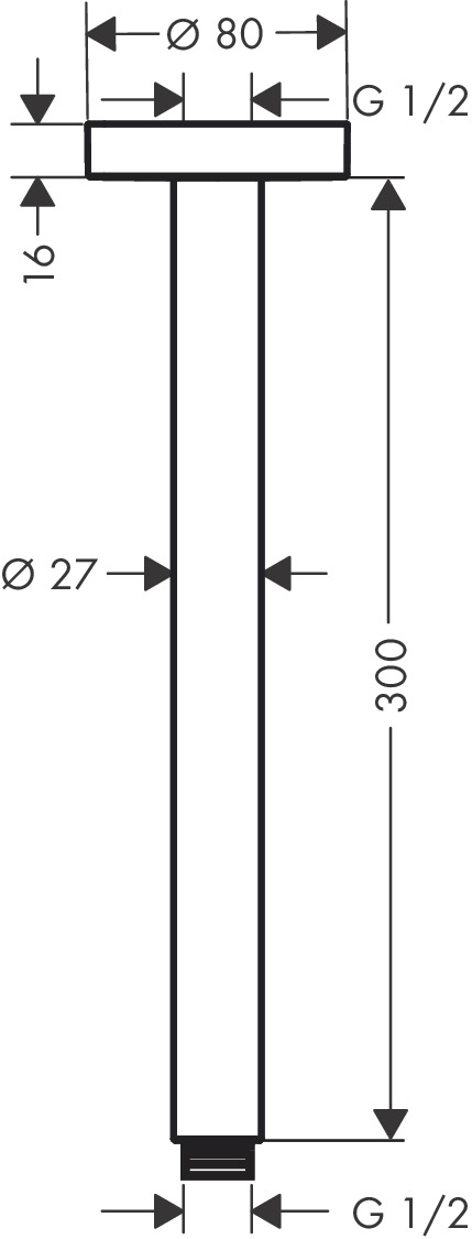Hansgrohe plafondbevestiging S G 1/2x30cm mat zwart