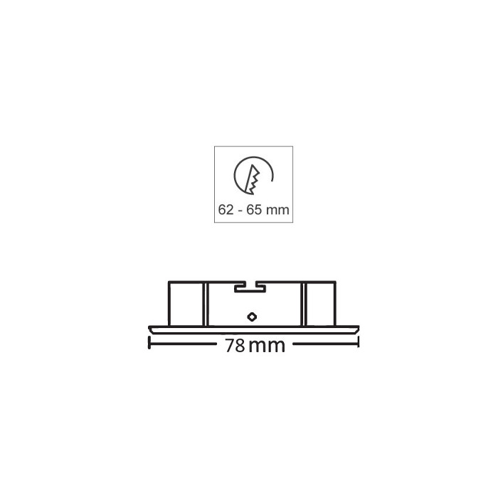 Deze inbouwspot heeft afdichtingsklasse IP20. Dat wil zeggen dat de Betty Vast inbouwspot geschikt is voor plaatsing in de badkamer in zone 3. Om de Betty Vast inbouwspot in het plafond te plaatsen, moet een rond gat van 60mm geboord worden.