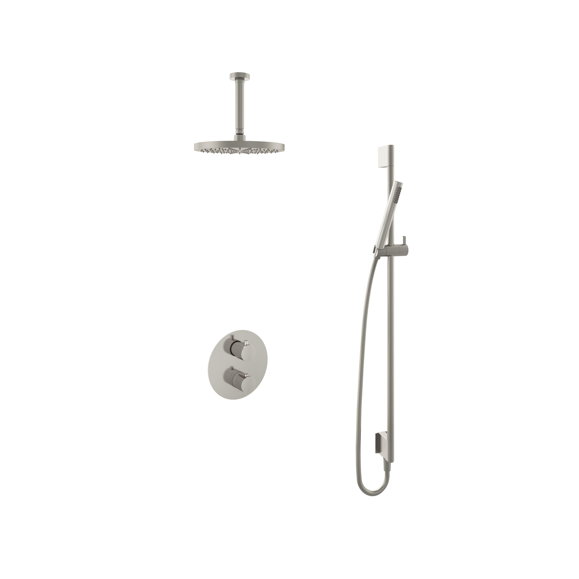 Hotbath Buddy IBS Regendoucheset - 15cm plafondarm - 25cm ronde hoofddouche - staafhanddouche - glijstang - geborsteld nikkel