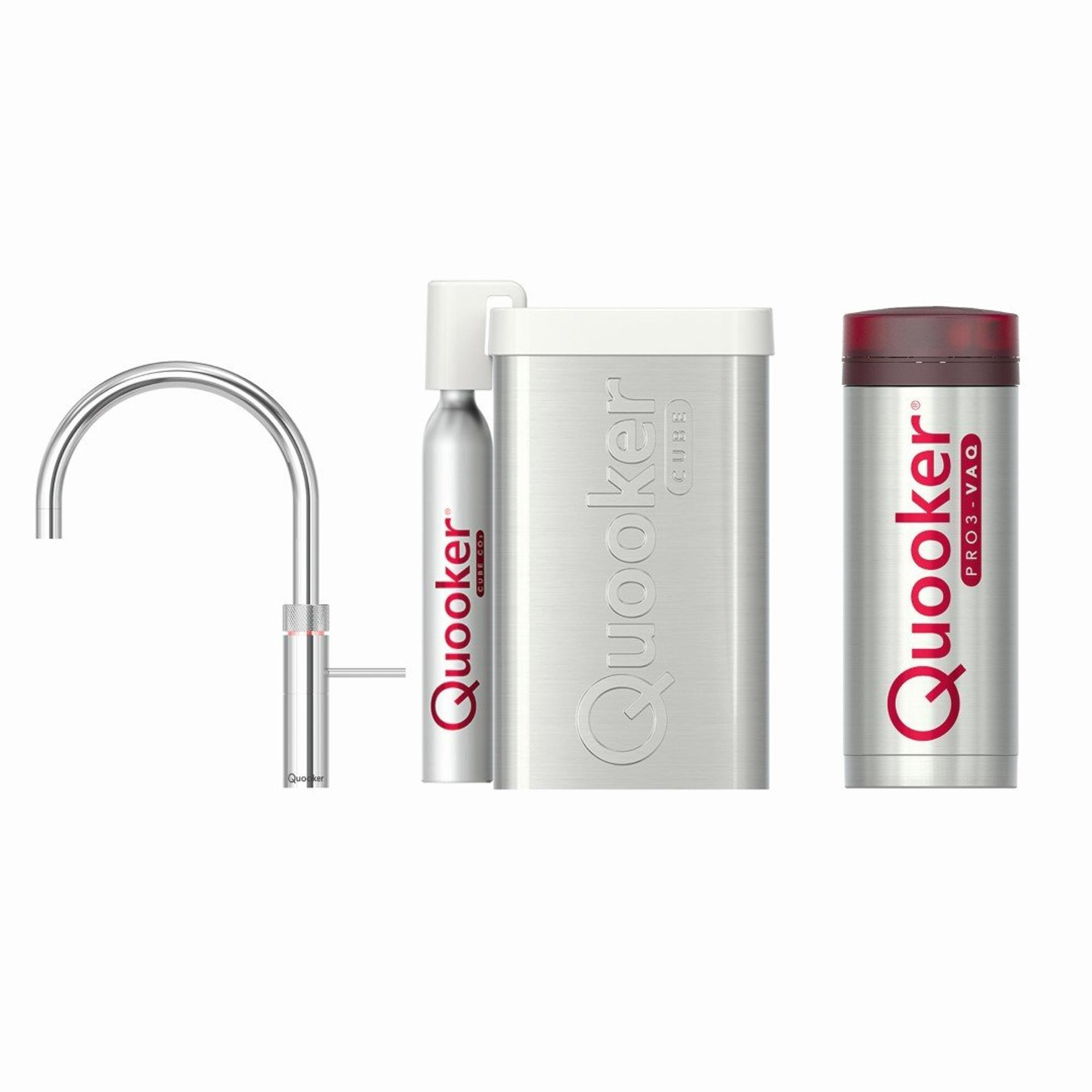 Quooker Fusion Round kokendwaterkraan - draaibare uitloop - PRO3 incl. Cube reservoir - Warm / kokend / bruisend / gefilterd water - Chroom