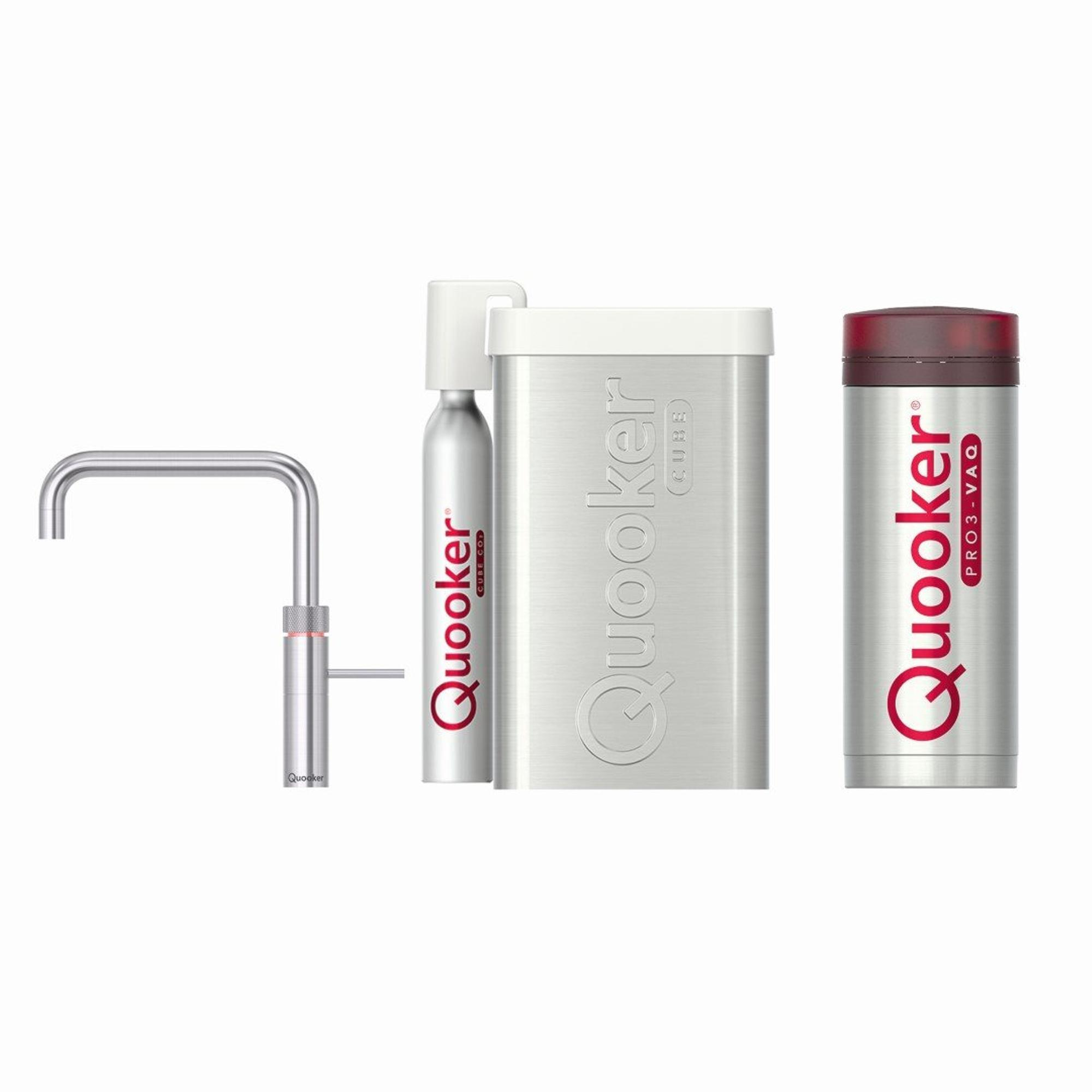 Quooker Fusion Square kokendwaterkraan - draaibare uitloop - PRO3 incl. Cube reservoir - Warm / kokend / bruisend / gefilterd water - RVS