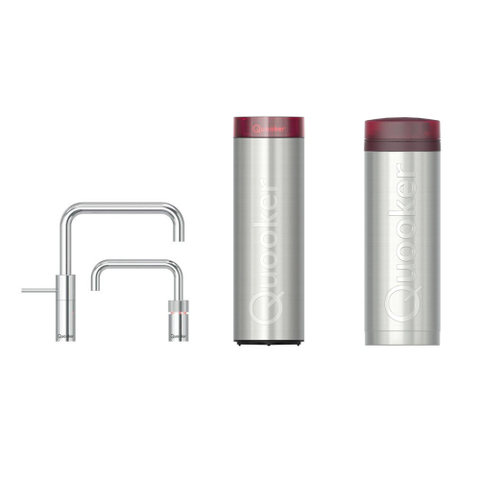 Quooker Nordic Square Twintaps kokendwaterkraan - draaibare uitloop - PRO3 incl. Cube reservoir - Warm / kokend water - Chroom