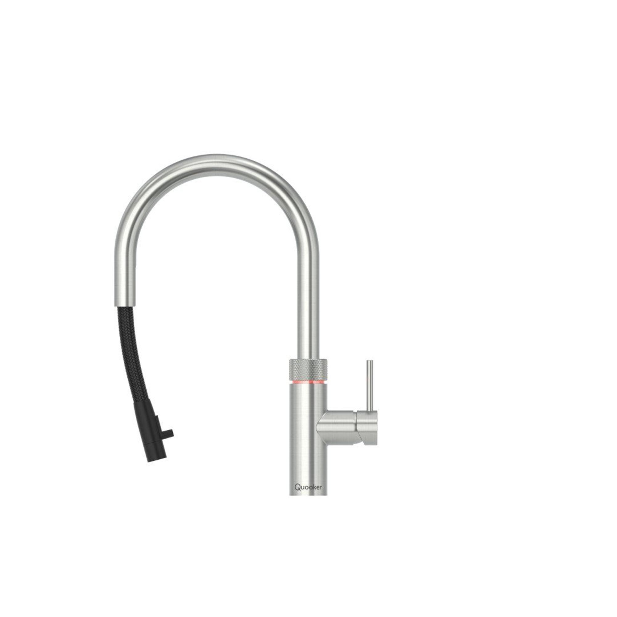 Quooker flex kokendwaterkraan - draaibare & uittrekbare uitloop - PRO3 incl. Cube reservoir - Warm / kokend / bruisend / gefilterd water - RVS