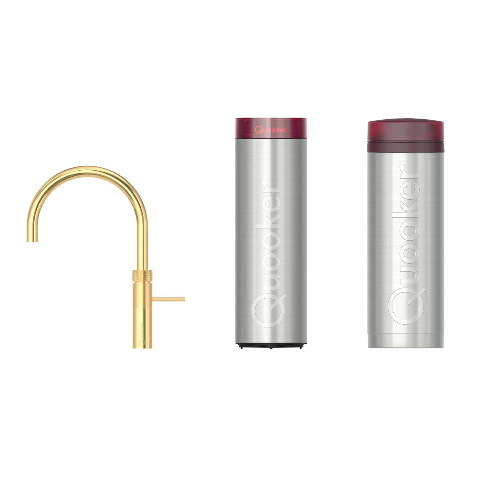 Quooker Fusion Round kokendwaterkraan - draaibare uitloop - PRO3 incl. Cube reservoir - Warm / kokend / bruisend / gefilterd water - Verguld (Goud)