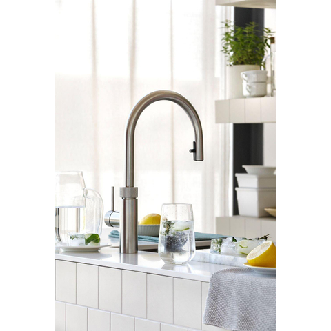 Ontdek de Quooker flex kokendwaterkraan - draaibare & uittrekbare uitloop - Combi incl. Cube reservoir - Warm / kokend / bruisend / gefilterd water - RVS