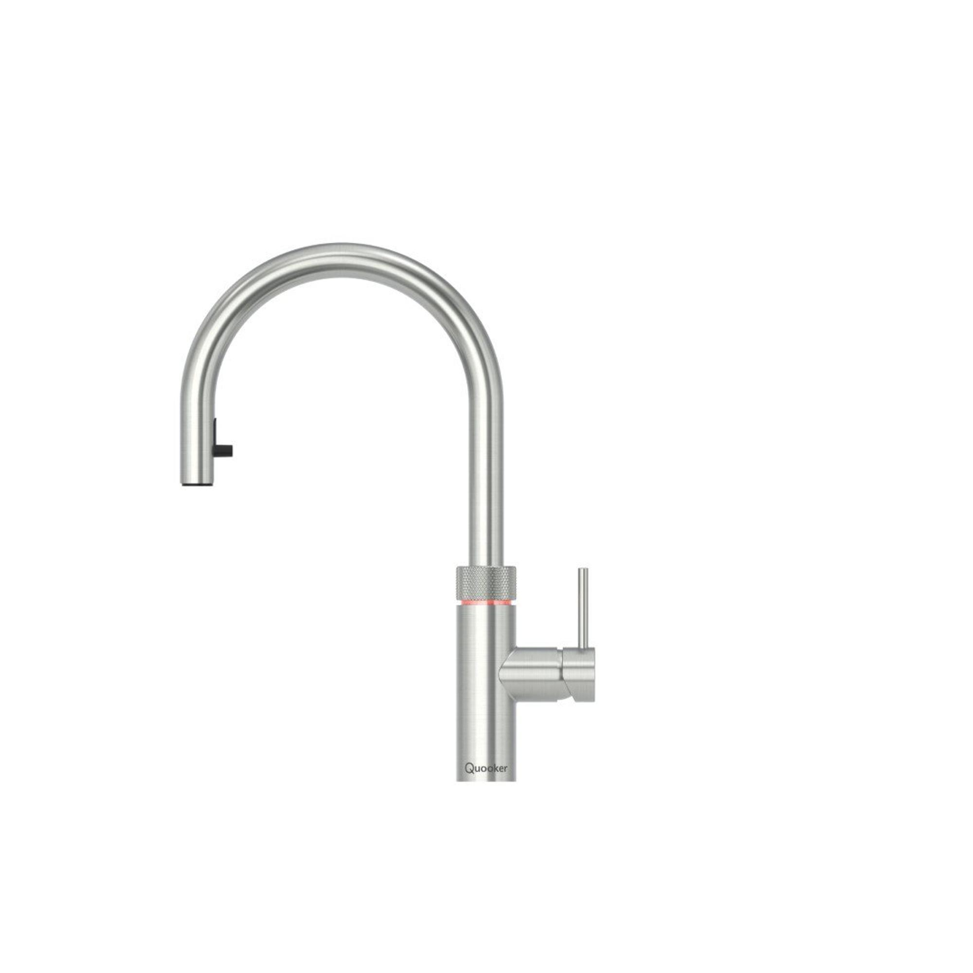 De Quooker flex kokendwaterkraan is een prachtig staaltje innovatie voor in jouw keuken. Met zijn draaibare en uittrekbare uitloop, gecombineerd met de Combi+ inclusief Cube reservoir, biedt deze kraan warm, kokend, bruisend en gefilterd water in een elegant roestvrijstalen design. Niet alleen een eyecatcher, maar ook een functionele toevoeging aan jouw keuken.