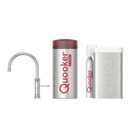 De Quooker Classic Fusion Round kokendwaterkraan is een prachtige toevoeging aan elke keuken, met zijn elegante ontwerp en geavanceerde functionaliteiten. Deze kraan biedt niet alleen warm en kokend water, maar ook bruisend en gefilterd water, waardoor het een veelzijdige en handige keuze is voor elk huishouden. Met de draaibare uitloop en het Cube reservoir is deze kraan een combinatie van stijl en efficiëntie, waardoor het een must-have is voor iedereen die van gemak en luxe houdt.