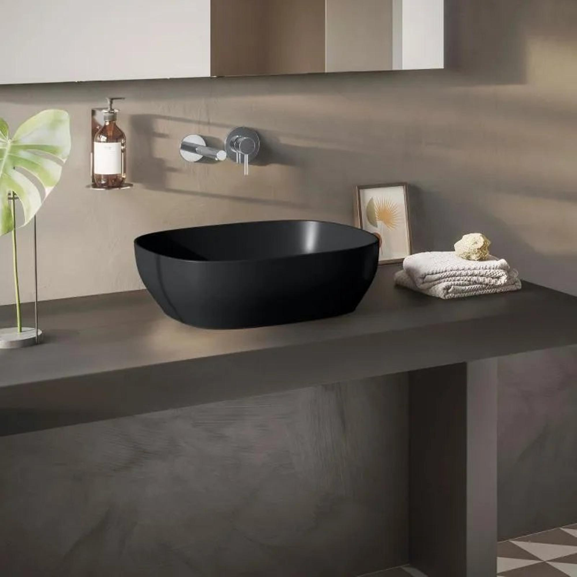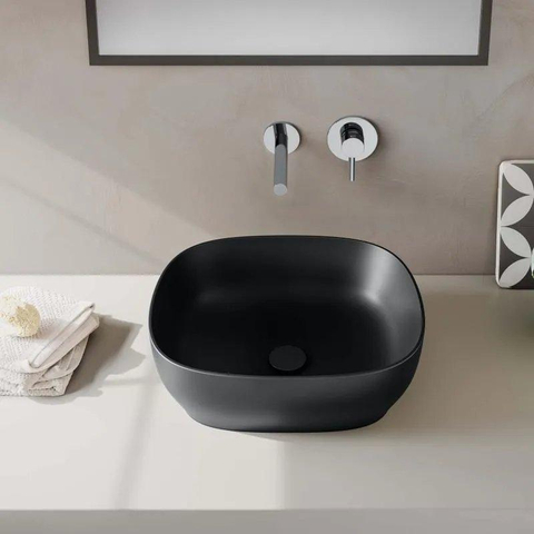 Vitra Outline opbouw wastafel vierkant zonder kraangat zonder overloop 47x41cm mat zwart SW299944