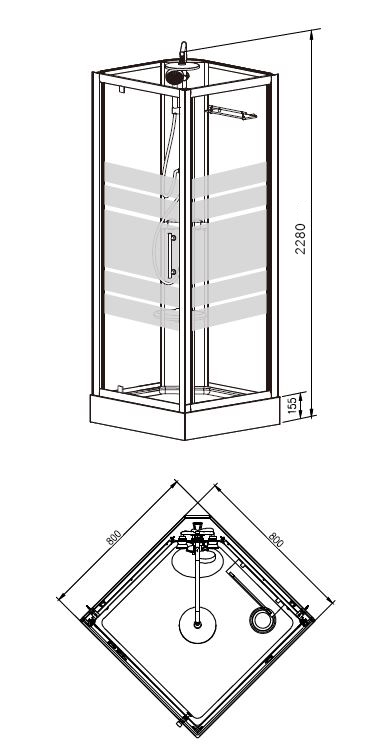 Deze douchecabine is gemaakt van 5 mm dik veiligheidsglas, bevat aluminium mat chrome profielen en heeft sfeervolle zwarte glazen achterpanelen. Op het veiligheidsglas zijn gesatineerde decoratie lijnen aangebracht voor extra privacy. De douchebak heeft een vloer gemaakt van houtcomposiet. U installeert deze douchecabine eenvoudig door het easyfix systeem. Deze Thermo douchecabine kan zonder silicone geïnstalleerd worden en sluit naadloos aan tegen de muur met behulp van een regelbaar profiel.