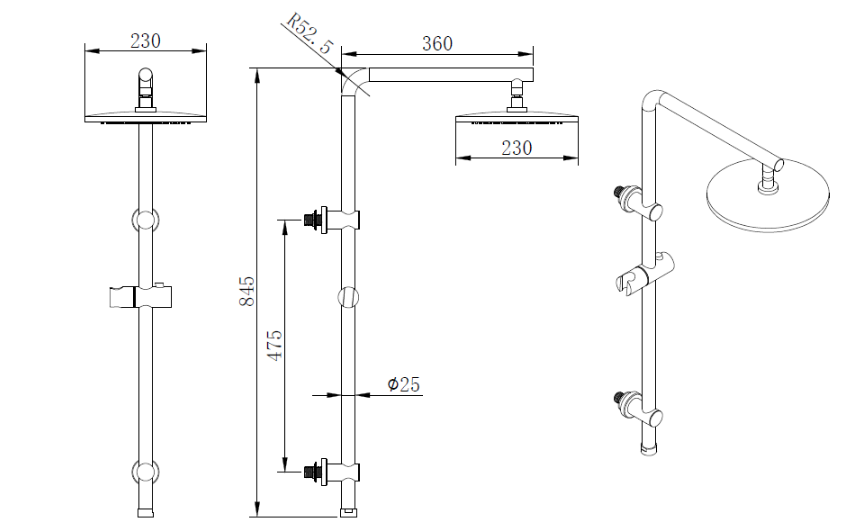 douchezuil met regendouche en handdouche