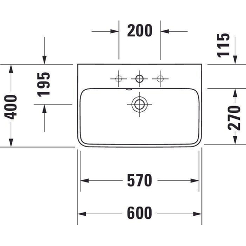 Duravit ME by Starck wastafel compact 1 kraangat met overloop 60x40cm wit