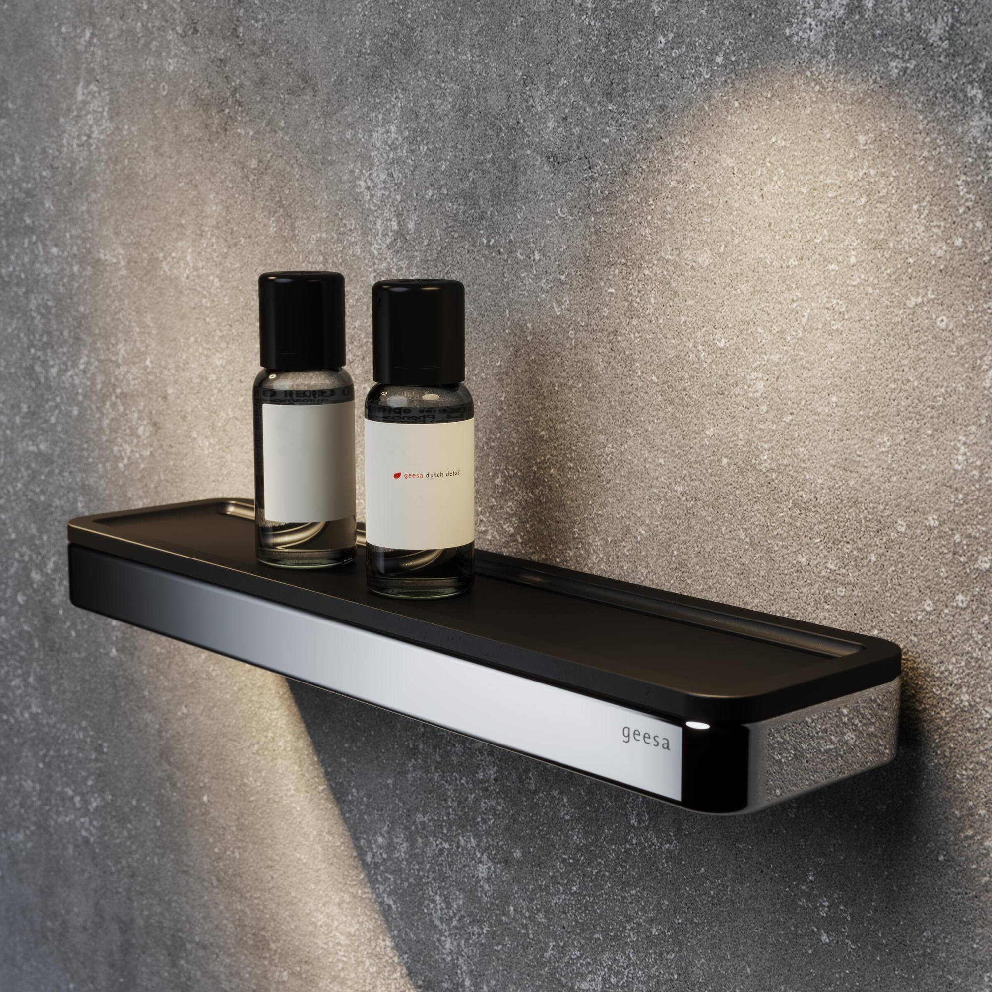 Het Geesa Frame Collection planchet is een functioneel item voor uw badkamer, toilet of doucheruimte. Deze smalle versie is bijzonder plaatsbesparend en is ontwikkeld om mini flacons in hotels op te presenteren. Het fijne is dat het ook voor kleinere badkamers de perfecte oplossing is omdat uw accessoires altijd binnen handbereik zijn. Verder ligt de functionaliteit in de details: het minimalistische planchet heeft een subtiel randje en afwateringssleuf. Het randje zorgt ervoor dat alle accessoires ook tijdens het douchen goed op hun plek blijven staan. De houder van hoogwaardig verchroomd metaal geeft een luxe accent. Bovendien is dit planchet verkrijgbaar in de kleuren zwart en wit.