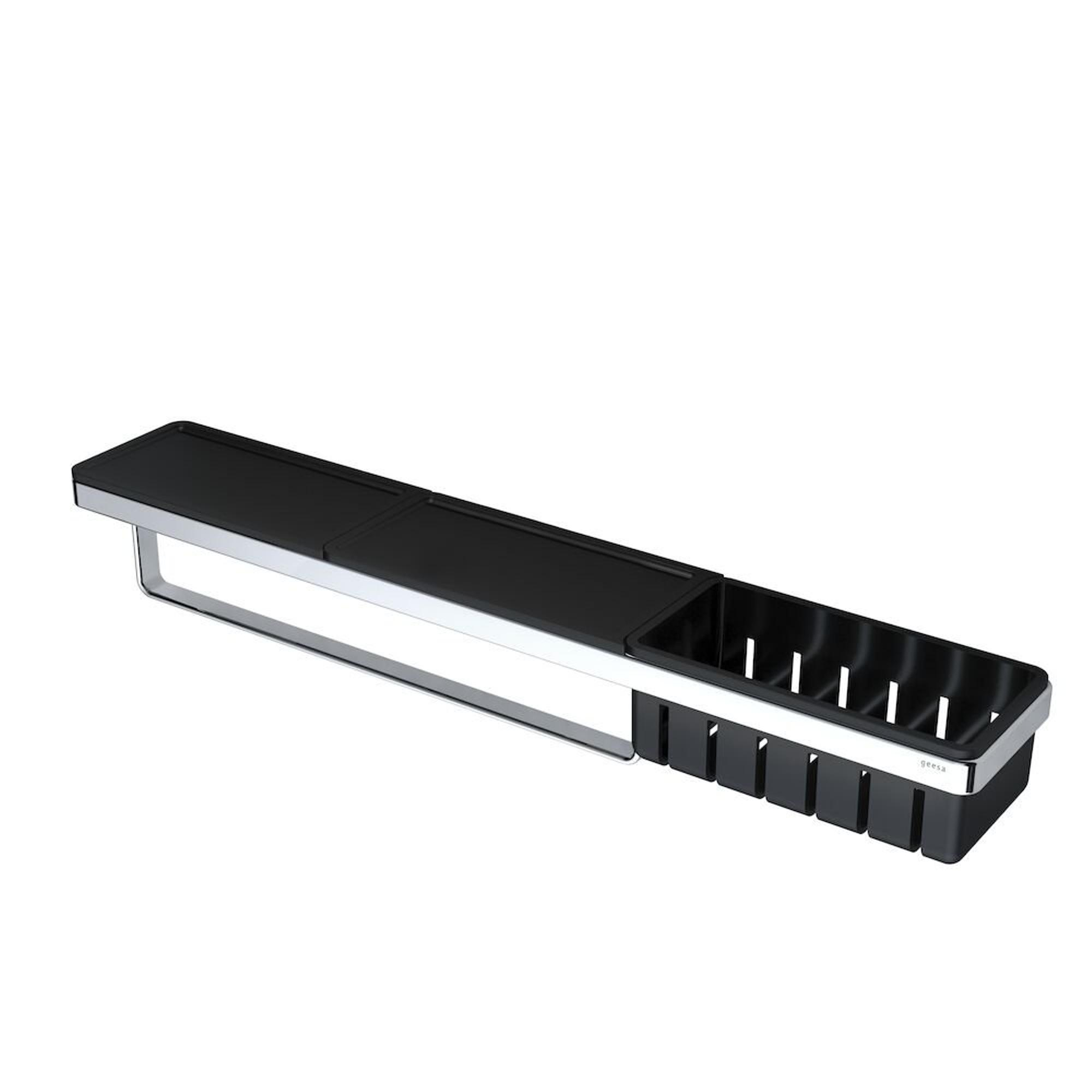 Geesa Frame Planchet met handdoekrek en douchemand Zwart / Chroom
