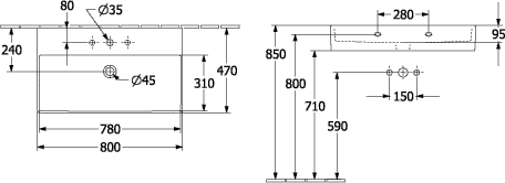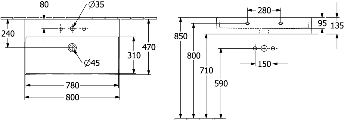 Villeroy & Boch Memento 2.0 wastafel voor handdoekhouders 80x47cm met overloop 1 kraangat ceramic+ wit