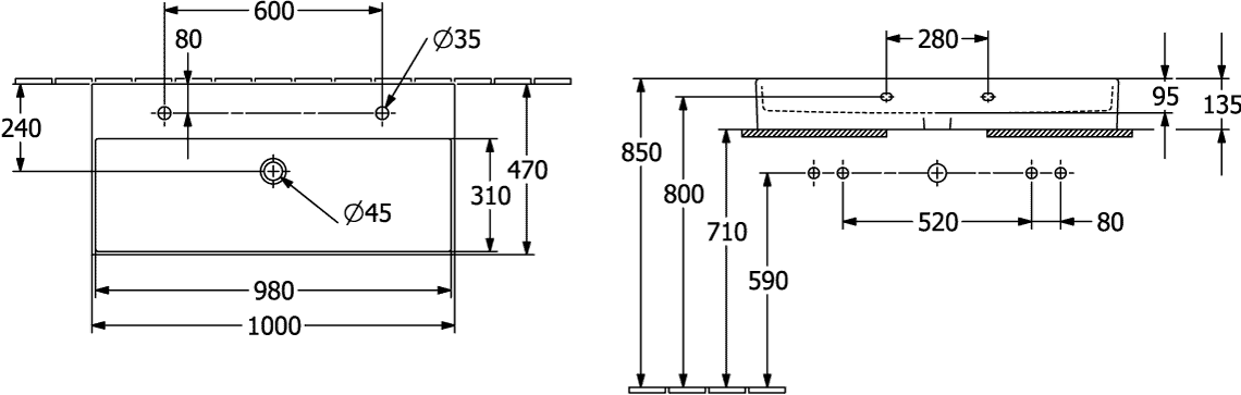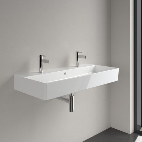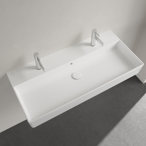 Villeroy & Boch Memento 2.0 wastafel onderzijde geslepen 100x47cm met overloop 2 kraangaten ceramic+ wit