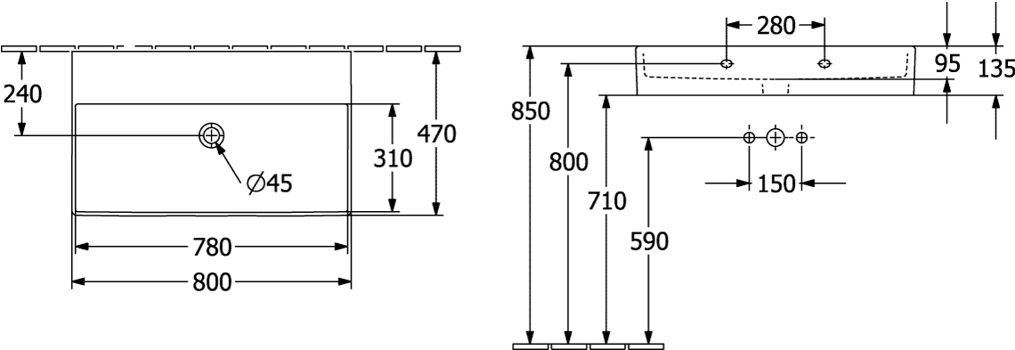 Villeroy & Boch Memento 2.0 wastafel voor handdoekhouders 80x47cm zonder overloop zonder kraangat ceramic+ wit
