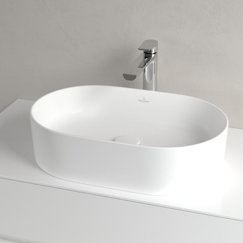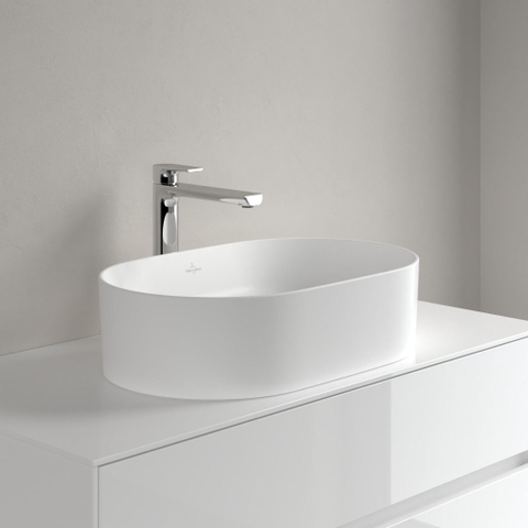 Villeroy & Boch Collaro opzetwastafel ovaal 56x36cm zonder overloop zonder kraangat ceramic+ stone white