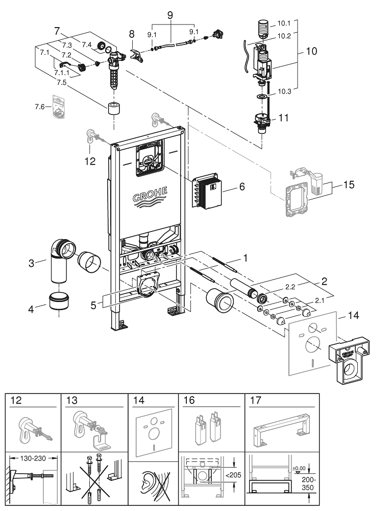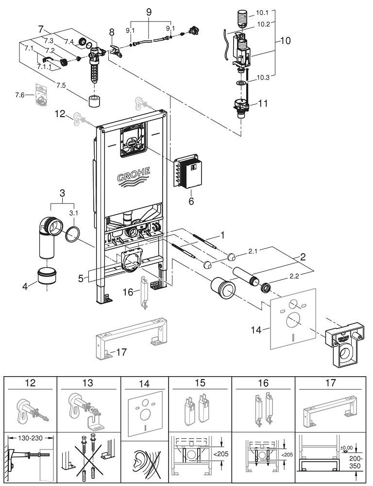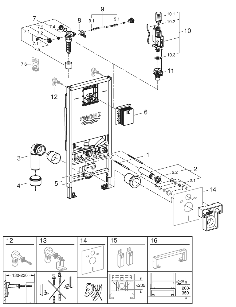 GROHE Rapid SLX Inbouwreservoir 113cm met frame met geintegreerde netspanning- en douchewc aansluiting