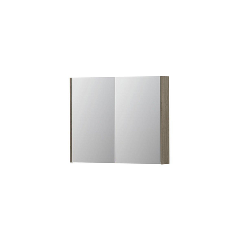 INK SPK2 Spiegelkast - 90x14x74cm - 2 deuren - dubbelzijdige Spiegel - schakelaar en stopcontact - MFC Greige eiken