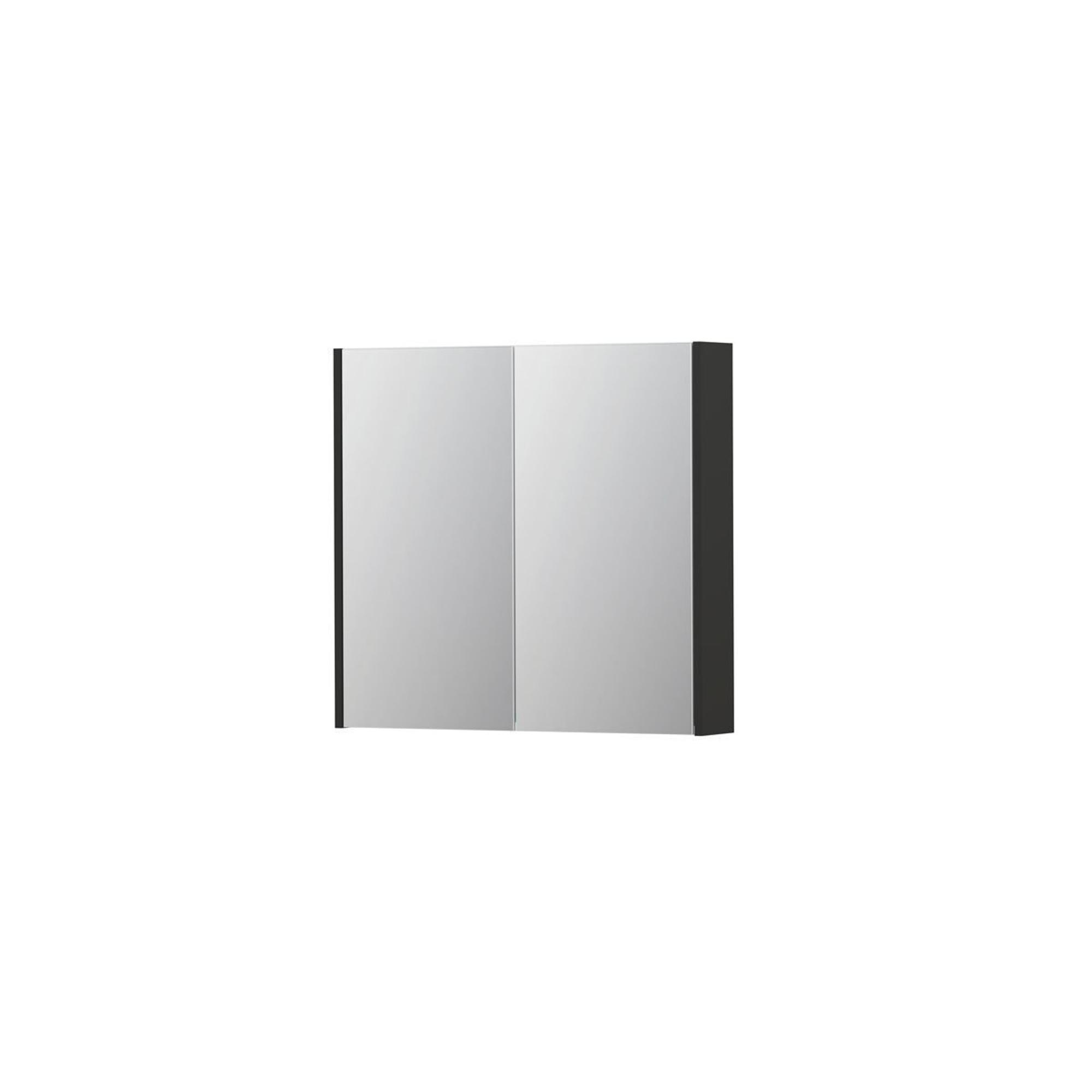 INK SPK2 Spiegelkast - 80x14x74cm - 2 deuren - dubbelzijdige Spiegel - schakelaar en stopcontact - MDF lak antraciet mat