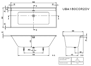 Villeroy & Boch Collaro inbouwbad rechthoek 180x80cm zwarte afvoerplug en mat wit