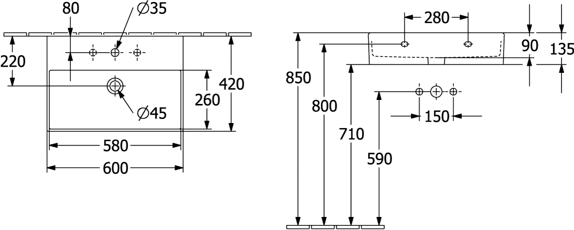 Villeroy & Boch Memento 2.0 wastafel voor handdoekhouders 60x42cm met overloop 1 kraangat wit 4A226001