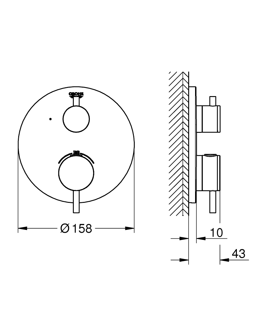 GROHE SafeStop Plus optionele temperatuurbegrenzer bij 43°C of 46°C inbegrepen