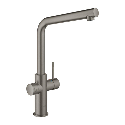 GROHE Blue Home Keukenkraan - L-Uitloop - 1-gats - filterfunctie - plat licht en bruisend water - hard graphite geborsteld