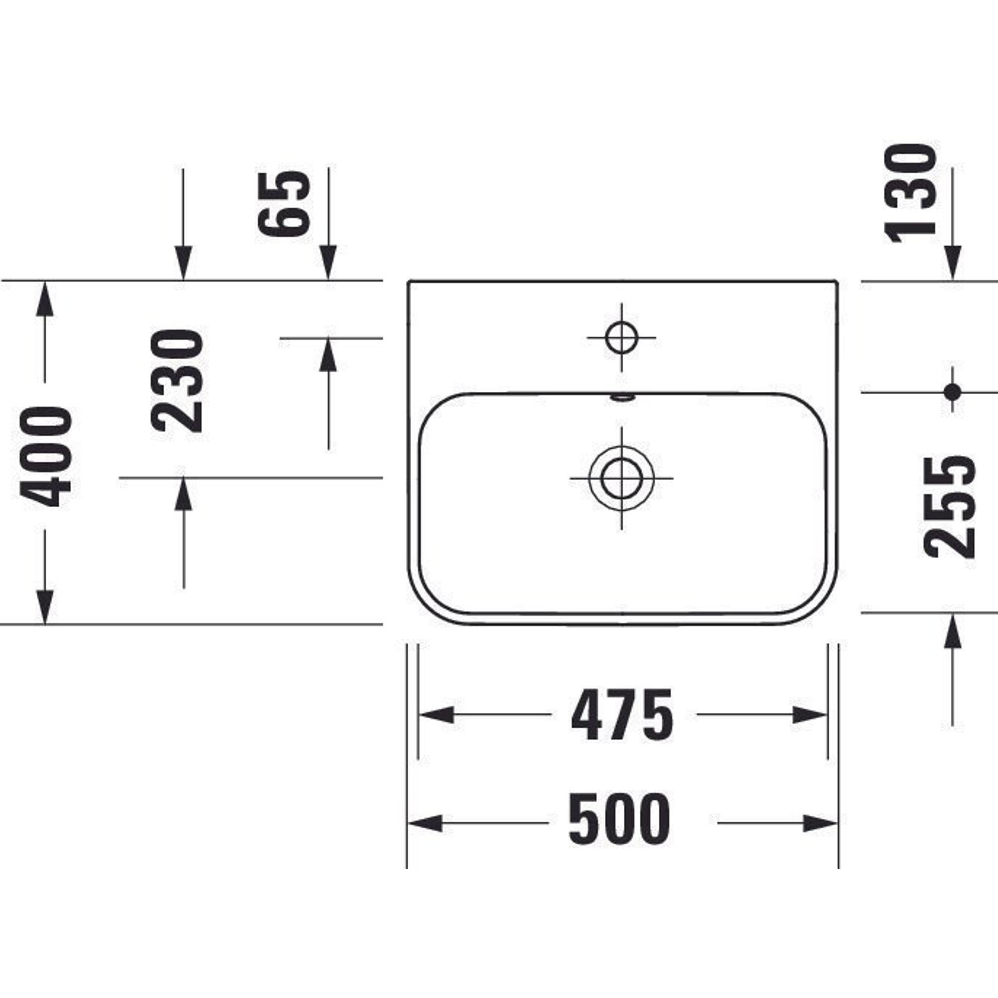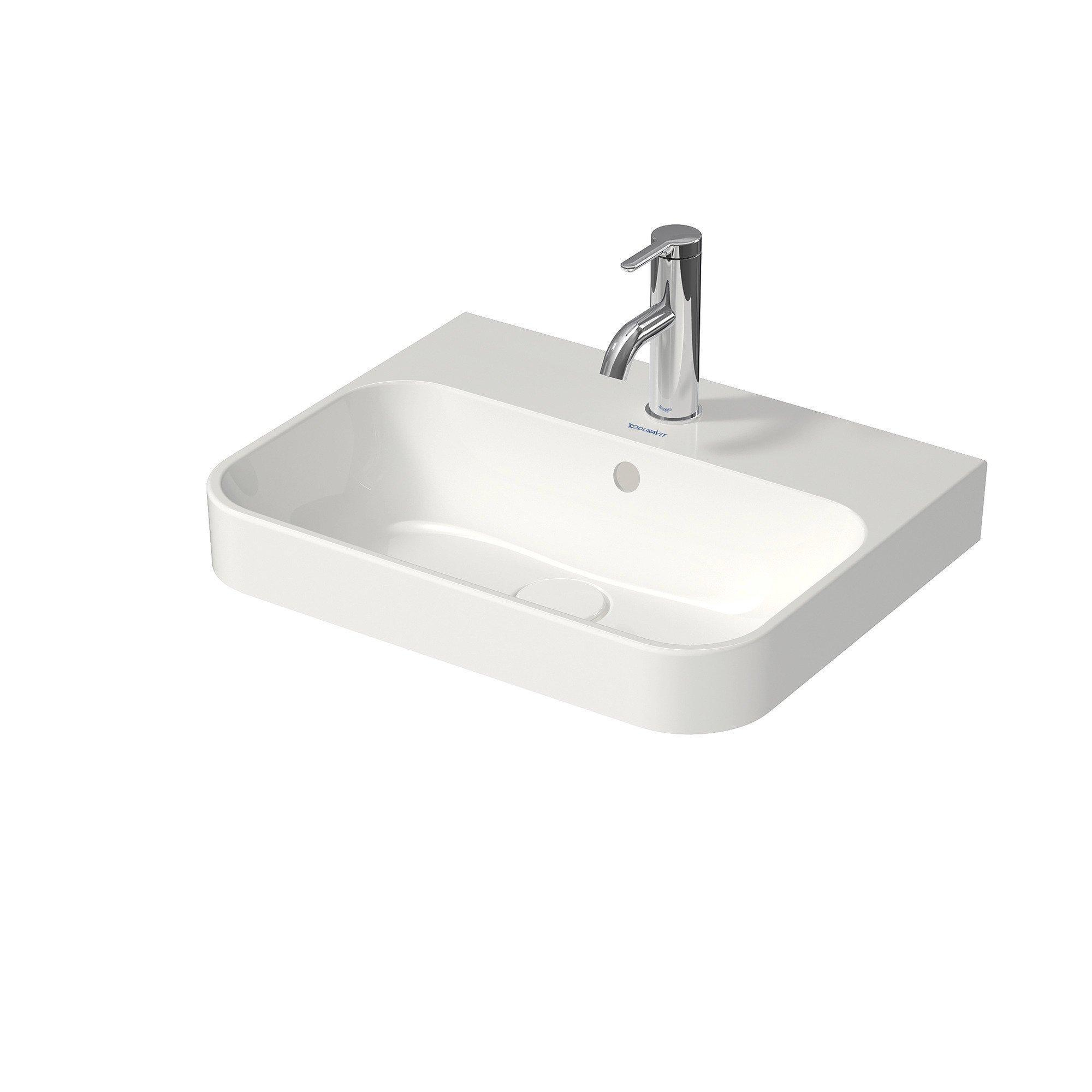Duravit HappyD 2 Plus opbouwwastafel met kraangat met overloop 50x40cm met keramisch push-open ventiel m. WG wit