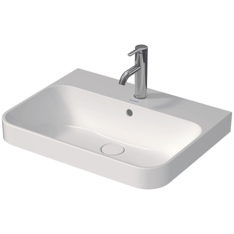 Duravit HappyD 2 Plus opbouwwastafel met kraangat met overloop 60x46cm met keramisch push-open ventiel m. WG mat antraciet