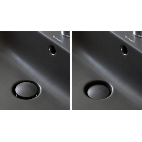 De Duravit HappyD 2 Plus opbouwwastafel straalt moderniteit uit in elk aspect. Van het strakke ontwerp tot de hoogwaardige materialen die zijn gebruikt, deze wastafel is perfect voor een eigentijdse badkamer. Het kraangat en de overloop zijn subtiel geïntegreerd in het design, terwijl het keramische push-open ventiel zorgt voor een moeiteloze bediening. De mat antraciete afwerking voegt een vleugje luxe toe aan de moderne uitstraling van deze wastafel.