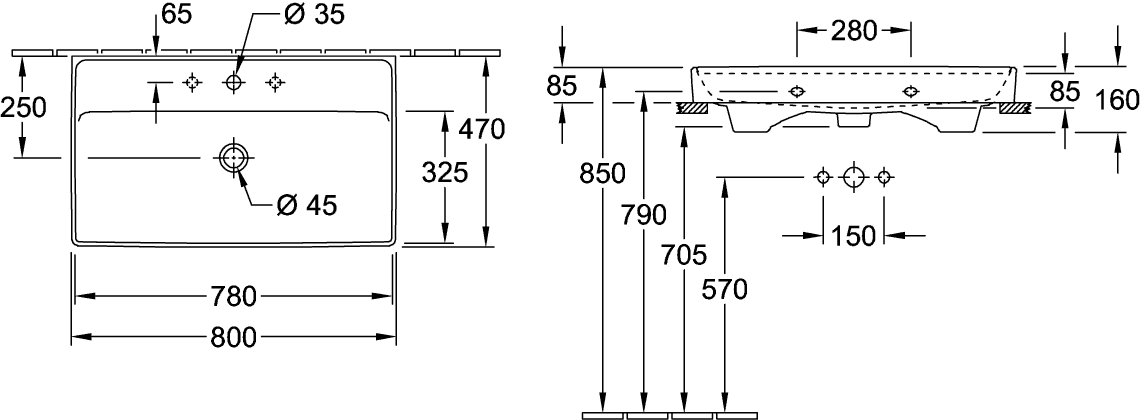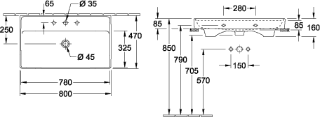 Villeroy & Boch Collaro meubelwastafel onderzijde geslepen 80x47cm met overloop 1 kraangat wit