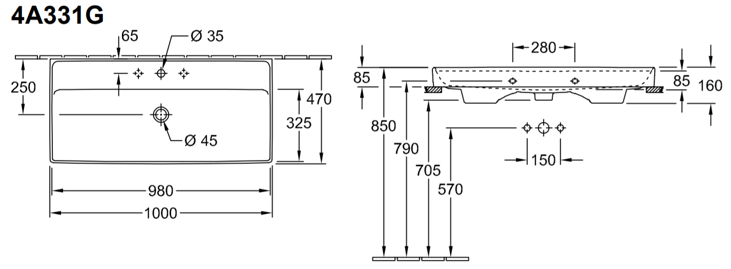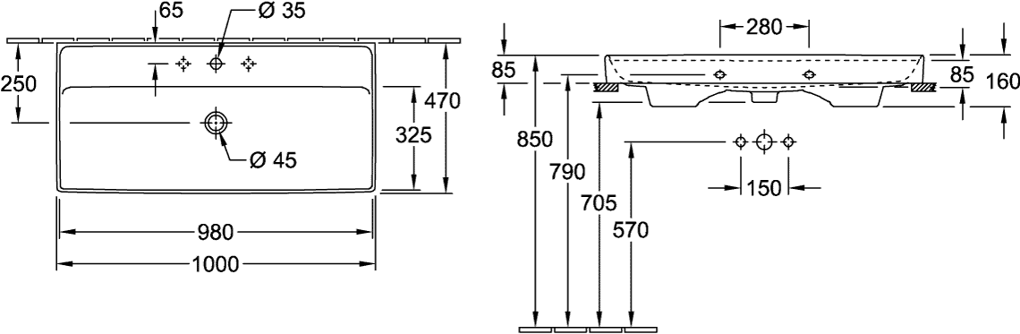 Villeroy & Boch Collaro meubelwastafel 100x47cm met overloop 1 kraangat ceramic+ stone white