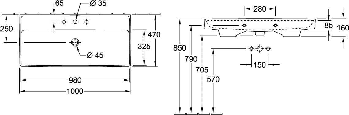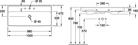 Villeroy & Boch Collaro meubelwastafel 100x47cm met overloop 1 kraangat wit