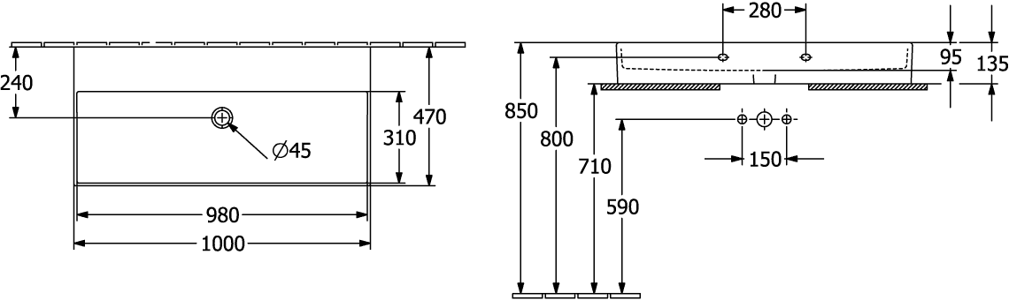 Villeroy & Boch Memento 2.0 wastafel onderzijde geslepen 100x47cm zonder overloop zonder kraangat wit