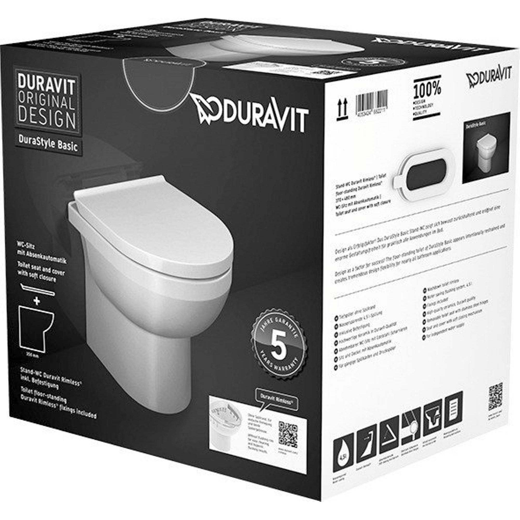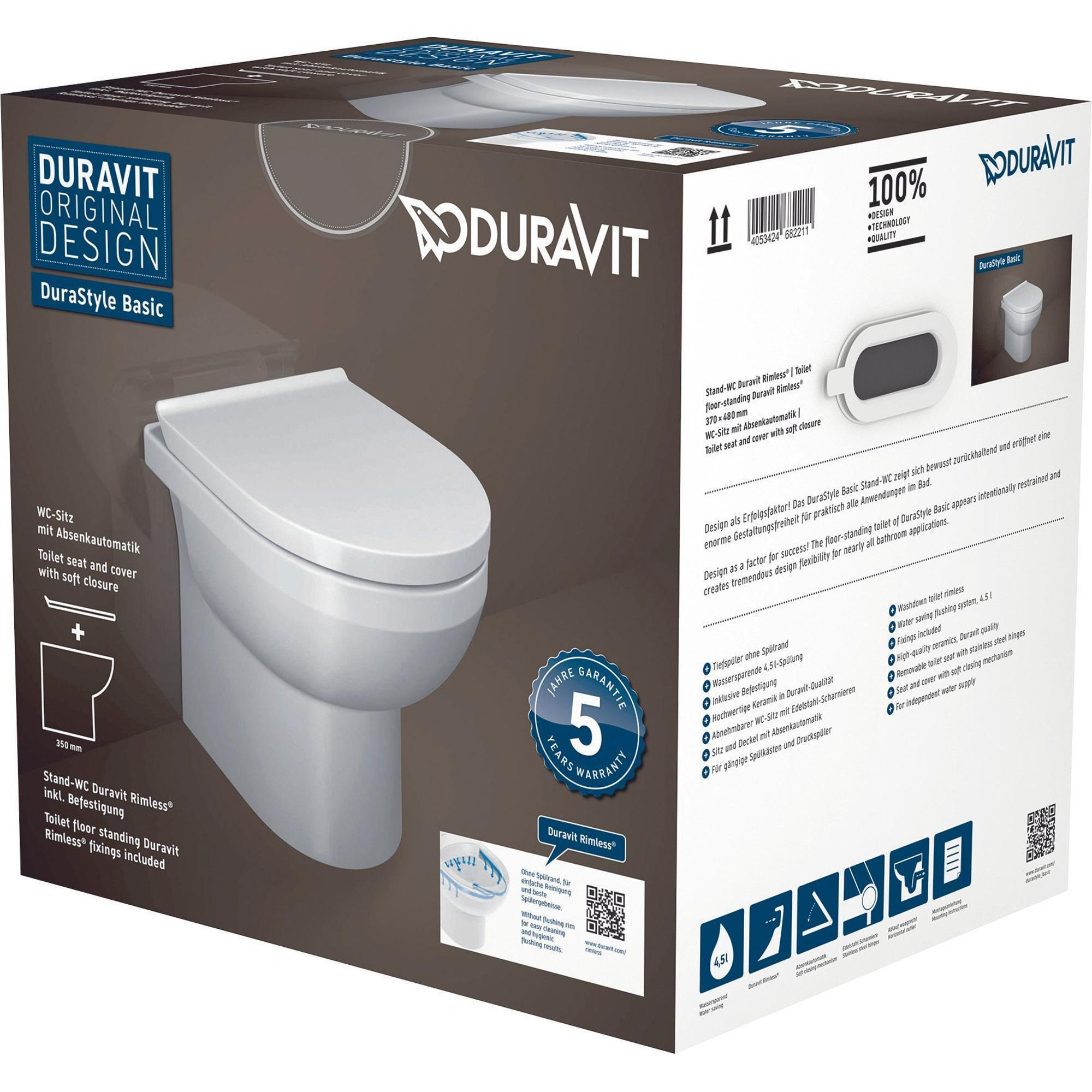 Duravit DuraStyle Basic closetset Staand diepspoel spoelrandloos 37x48cm met softclose closetzitting wit