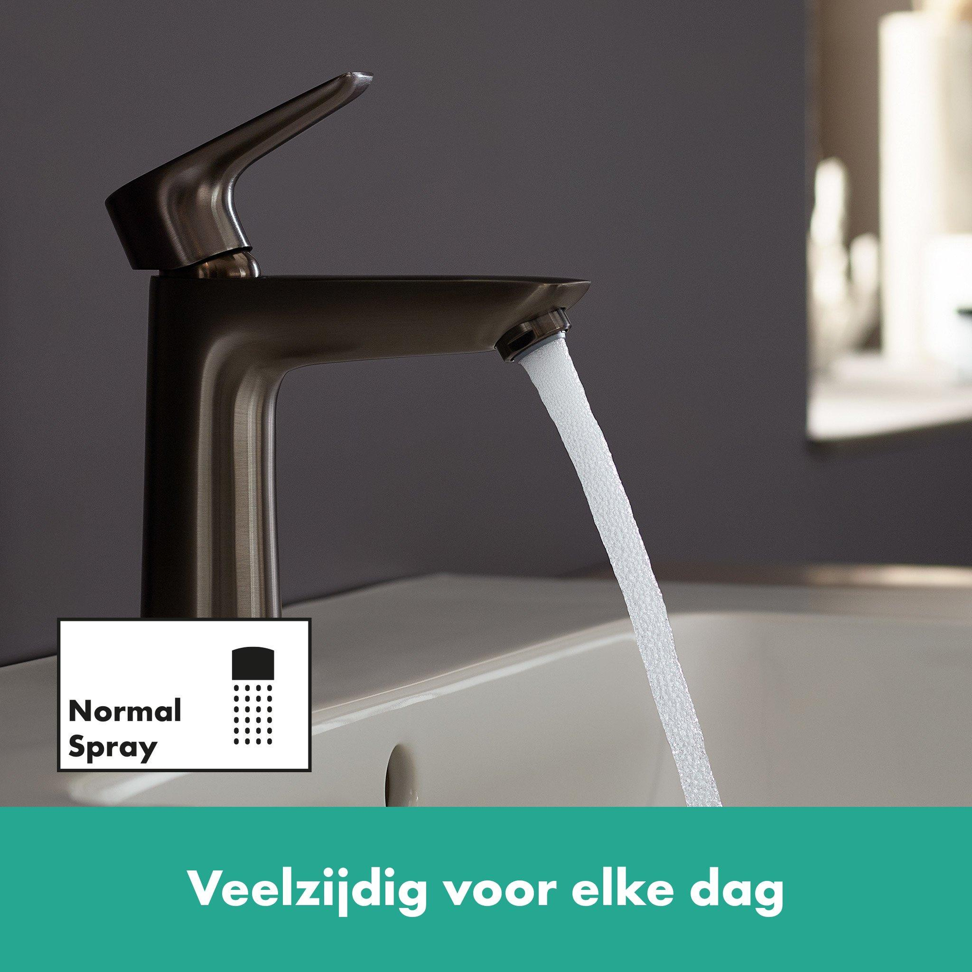 De ééngreeps wastafelmengkraan Talis E 110 met trekstang-afvoerset in Brushed Black Chrome van hansgrohe geeft kleur aan uw wastafel. Grote, zwevende oppervlakken, nauwkeurige randen en zacht aflopende vormen maken het design uit van deze hendelmengkraan. De glanzende afwerking van Brushed Black Chrome doet de hoogwaardige mengkraan extra stralen. Zo wordt de kraan een optisch statement, dat perfect past in een moderne badkamer. Extra pluspunt: De grote afstand tussen uitloop en wastafel biedt meer ruimte voor gebruiksgemak (ComfortZone 110).