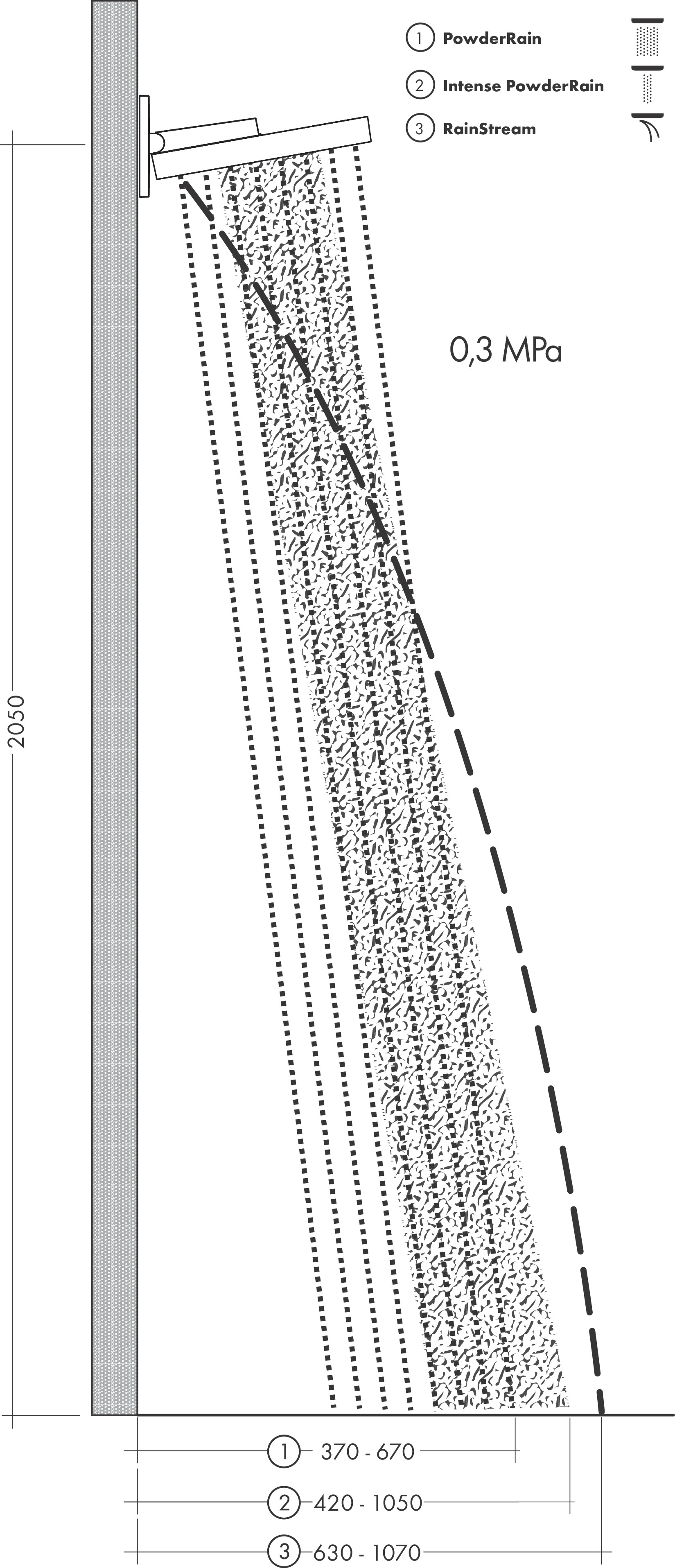 Rainfinity hoofddouche 360 3jet met wandaansluiting is extra groot (diameter 360 mm) en zorgt voor ontspanning met drie op elkaar afgestemde straalsoorten. PowderRain omhult het lichaam met de fijnste waterparels en ontspant van top tot teen in groots formaat. Intense PowderRain is een intensievere straal waarmee bijvoorbeeld shampoo goed kan worden uitgespoeld. RainStream creëert een volle waterval om stramme spieren los te maken. Je kunt je haar gewoon droog houden als je dat wilt: de hoek van de douchearm kan worden aangepast om het water flexibel te richten.