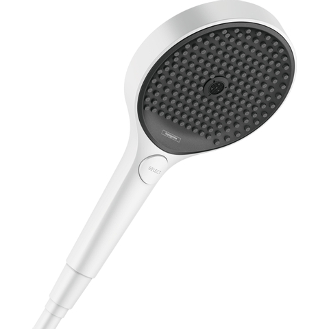 Met de exclusieve combinatie van mat wit en de grote, antracietkleurige straalplaat (diameter 130 mm) is de Rainfinity handdouche 130 3jet bijzonder om te zien. De trendkleur gaat heel goed samen met sfeervolle materialen zoals hout en textiel. Designliefhebbers kunnen zo samen met andere producten uit de serie Rainfinity heel makkelijk hun eigen wellness badkamer creëren.