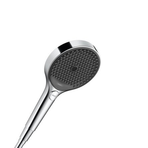 De Rainfinity handdouche 130 3jet van hansgrohe omhult het lichaam perfect met drie verschillende straalsoorten: PowderRain, de zachte cocon van microfijne druppels. Omhult het lichaam en zorgt voor een uniek gevoel onder de douche. Intense PowderRain, de geconcentreerde bundel waterparels waarmee shampoo moeiteloos kan worden uitgespoeld. En MonoRain, de natuurlijke, geconcentreerde straal - perfect voor wellness en begietingen zoals bekend van Kneipp. Wisselen van straalsoort kan met hansgrohe Select met één druk op de knop.