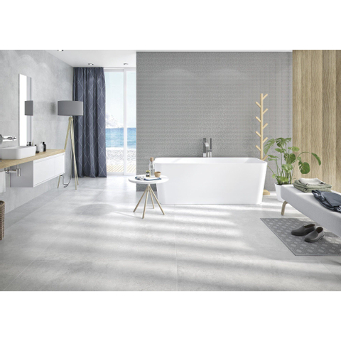 De veelzijdigheid van deze wandtegel maakt hem geschikt voor verschillende toepassingen. Of je nu een hele muur wilt betegelen of een accentwand wilt creëren, deze tegel past zich moeiteloos aan aan elke ruimte. De neutrale witte kleur en de subtiele betonlook maken hem gemakkelijk te combineren met verschillende kleurenschema's en interieurstijlen.