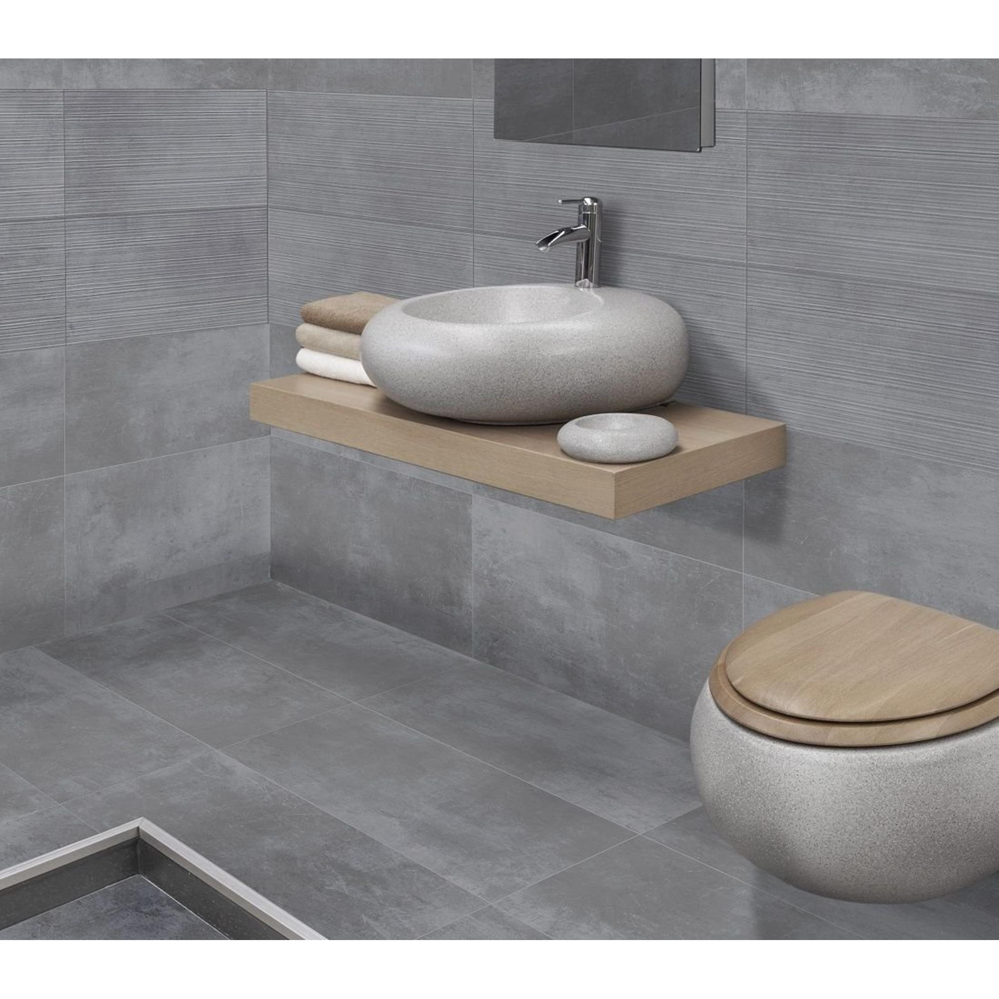 De EnergieKer wand- en vloertegel in Loft Grey is een prachtige toevoeging aan elke badkamer of keuken. Met zijn rechthoekige vorm, afmetingen van 30x60cm en een dikte van 9mm, straalt deze tegel elegantie en moderniteit uit. De gerectificeerde afwerking zorgt voor strakke lijnen en een naadloze look, terwijl de betonlook een stoere en industriële uitstraling geeft aan de ruimte. Of je nu een minimalistische stijl of een meer robuuste inrichting hebt, deze tegel past perfect bij elke interieurstijl.