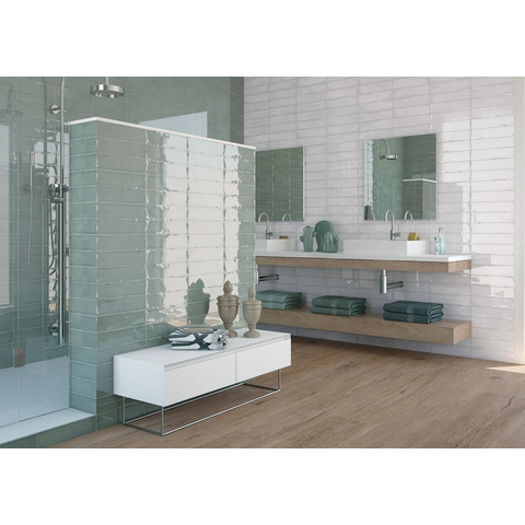 Dankzij de veelzijdigheid van deze tegel kun je verschillende patronen creëren en hem combineren met andere kleuren uit de Colonial-collectie. Zo geef je elke ruimte een unieke en persoonlijke uitstraling. De glanzende Jade-kleur zorgt voor een levendige en frisse touch, ideaal voor een vintage of retro sfeer.