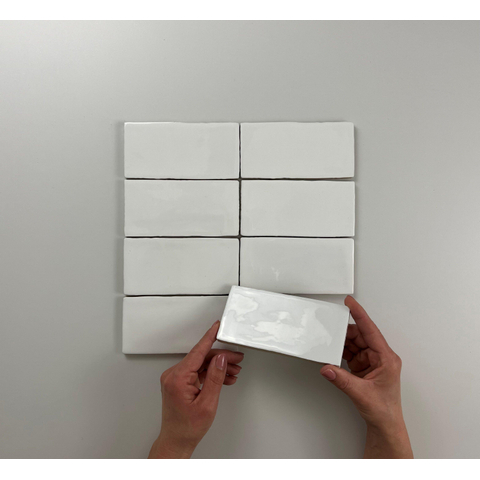 De witte glans van deze tegel geeft een vleugje elegantie aan elke ruimte. De strakke rechthoekige vorm en de verfijnde afwerking zorgen voor een tijdloze elegantie die moeiteloos kan worden gecombineerd met verschillende decoratiestijlen, van modern tot klassiek.