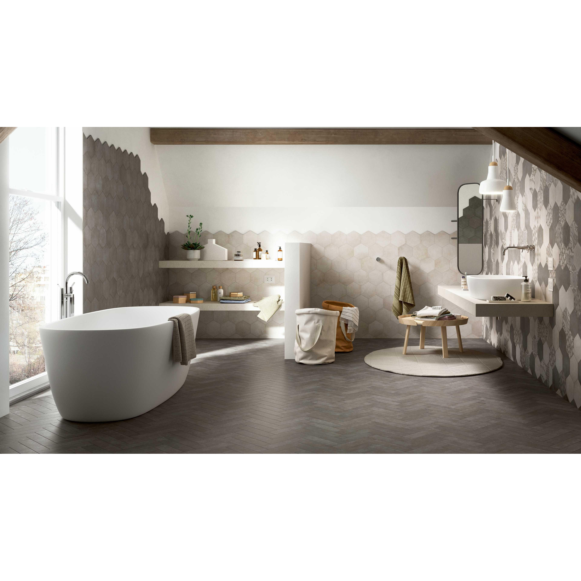 De Marazzi Clays tegel kan worden omschreven als prachtig. De combinatie van de hexagonale vorm en de diepe lava-achtige kleur zorgt voor een visueel aantrekkelijk element in elke ruimte. Deze tegel trekt onmiddellijk de aandacht en creëert een luxe uitstraling die de ruimte transformeert.