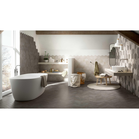 De Marazzi Clays Vloer- en wandtegel hexagon 18x21cm 9.5mm R9 porcellanato Lava is een prachtige toevoeging aan elke badkamer of keuken. Met zijn unieke hexagonale vorm en lava-achtige porcellanato afwerking, straalt deze tegel een moderne en stijlvolle uitstraling uit. Of je nu op zoek bent naar een vloer- of wandtegel, deze veelzijdige tegel past perfect bij verschillende interieurstijlen en voegt een vleugje elegantie toe aan elke ruimte.